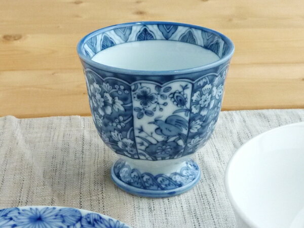 アウトレット 美濃焼 染付更紗 高台カップ 8cm 170ml径8x高7.5cm 170ml 染付 更紗 食器 和食器 日本製