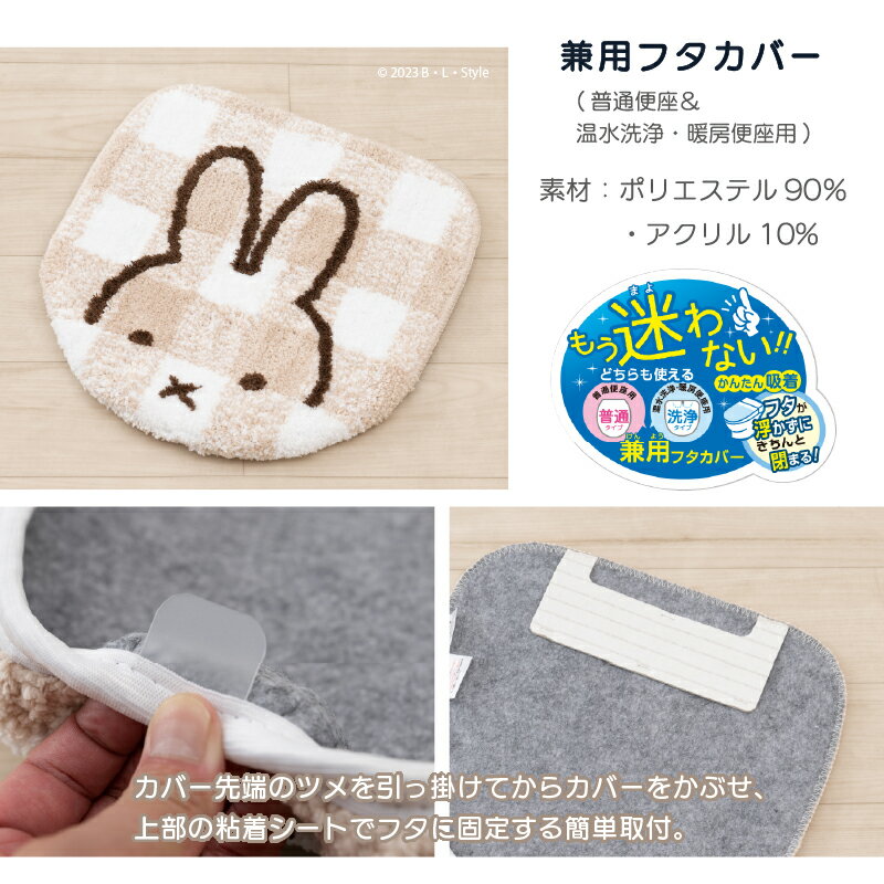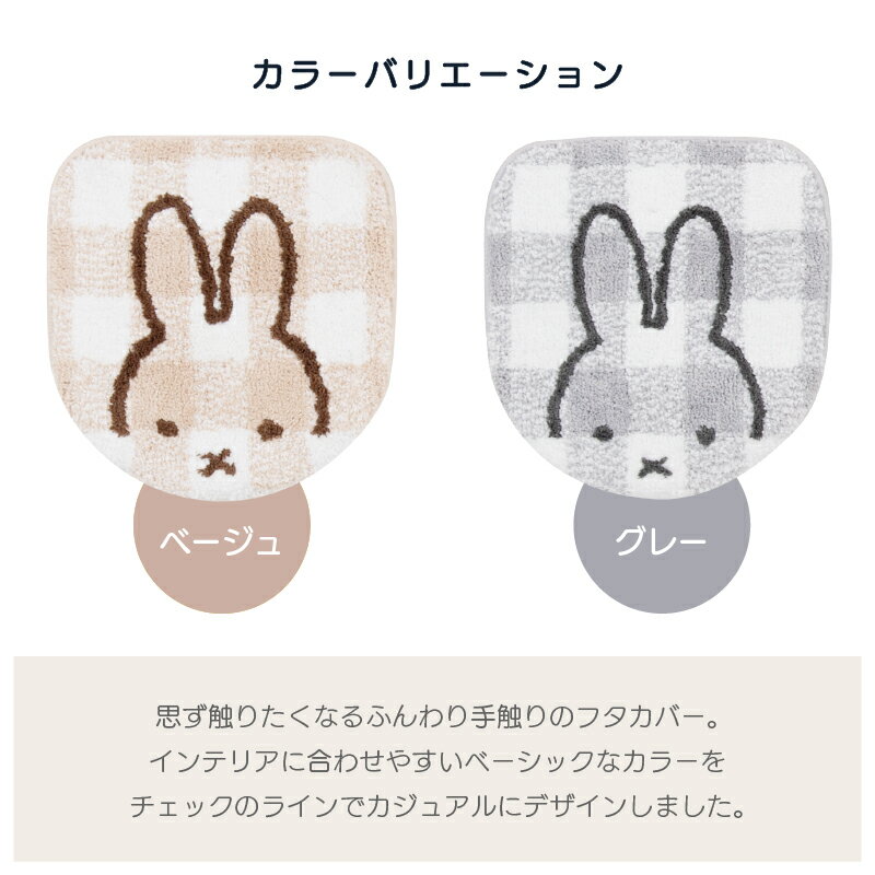 11/25まで【ポイント20倍☆SALE】 ミッフィー 兼用便座用フタカバー 「チェックライン」 ベージュ グレー 単品販売 [ miffy ディック・ブルーナ トイレタリー キャラクターグッズ ミッフィーグッズ キャラ グッズ 大人可愛い かわいい おしゃれ トイレフタ カバー ]