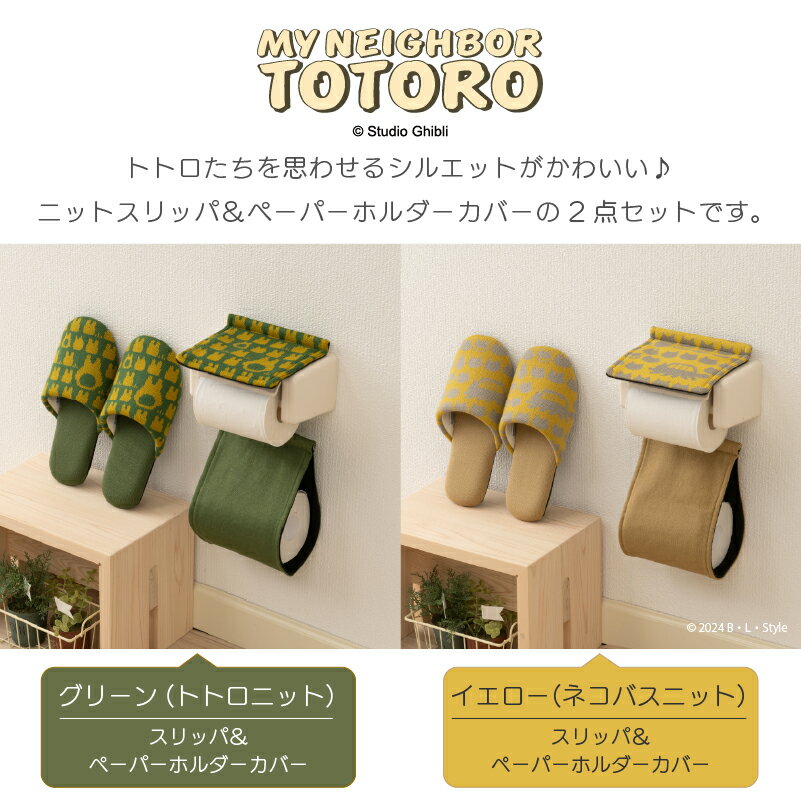 【SALE☆】となりのトトロ 2点セット「トトロニット/ネコバスニット」スリッパ ペーパーホルダーカバーN [ ジブリ totoro トトログッズ キャラクター グッズ トイレ用品 トイレタリー 洗える かわいい センコー senko ]24SS グリーン イエロー