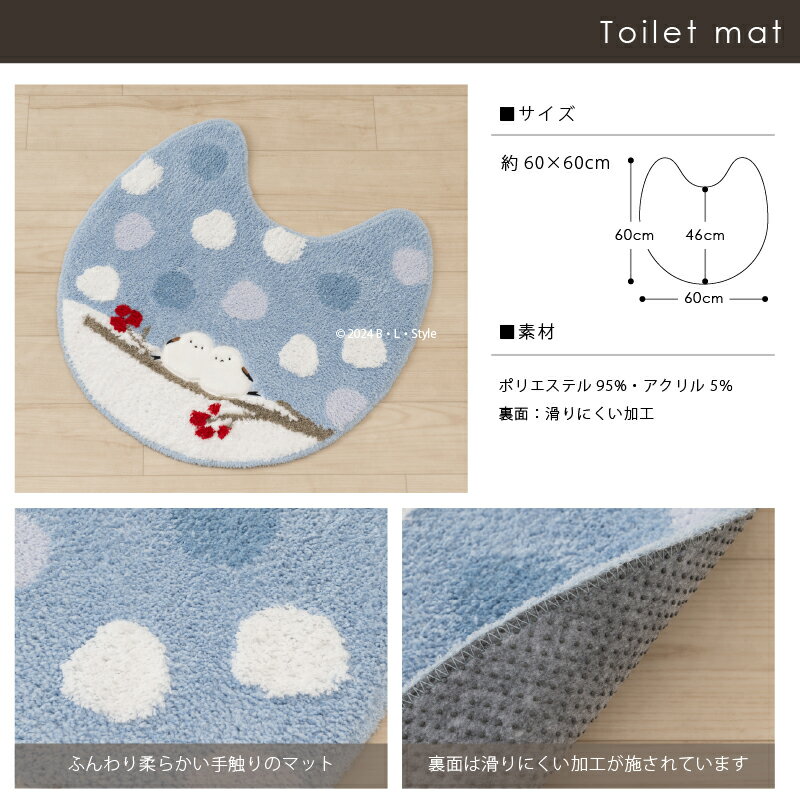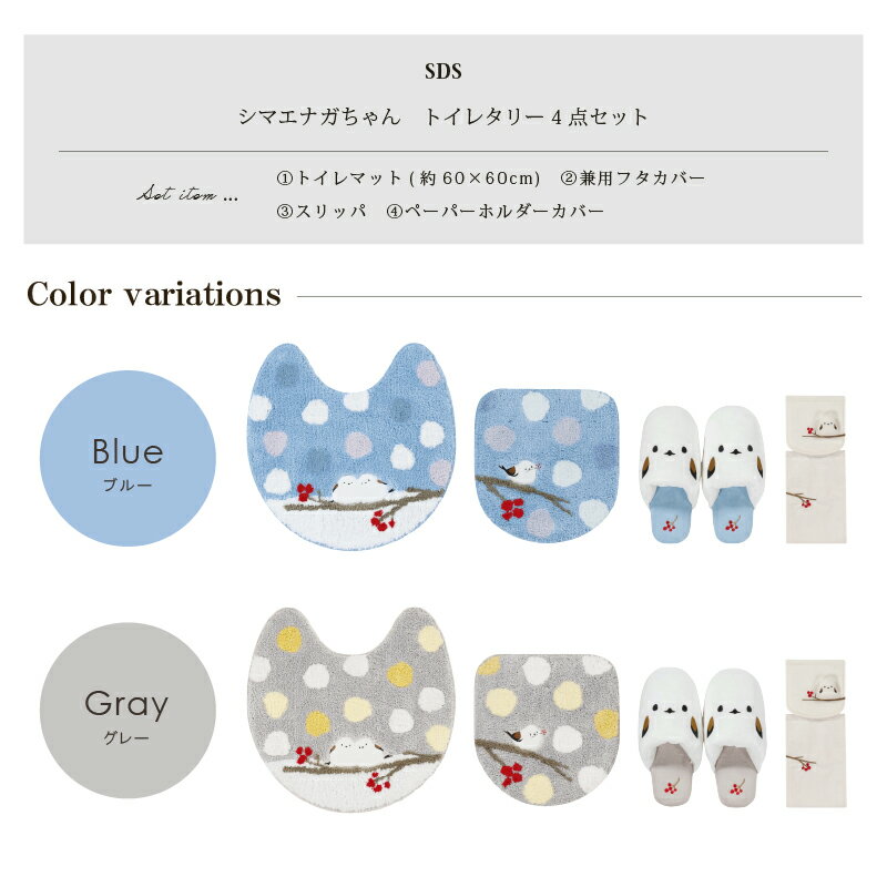トイレ 4点セット 「SDS シマエナガちゃん」( トイレマット /60×60cm 兼用フタカバー スリッパ ペーパーホルダーカバーN )[ トイレカバー セット シマエナガ 可愛い かわいい 鳥 グッズ トイレタリー 洗える トイレ用品 滑り止め ]24AW ブルー グレー