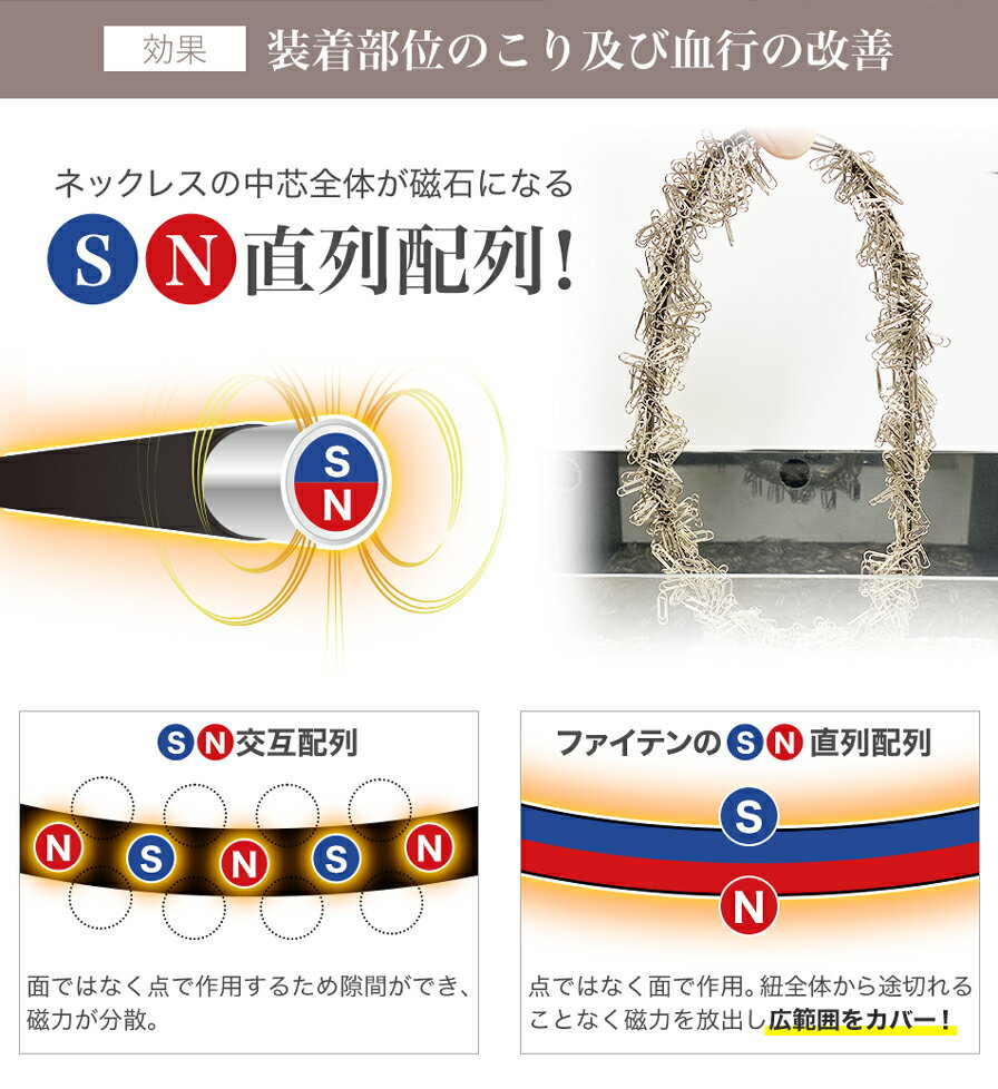 【クリックポストサービスご利用上の注意事項】 ※購入前に必ずご確認ください。 ■商品の出荷後に追跡番号をご案内いたします。お荷物の到着まで安心してお待ちいただけます。 ■商品はポスト投函となります。到着後早めに回収ください。 ※商品の紛失・未着・盗難・破損・遅延した場合の責任は負いかねます。商品代金並びに送料や手数料の返金、及び交換・返品対応は一切出来ません。 ※宅配BOXなど一時保管スペースへの配達は行っておりません。 ※郵便受けの入り口が狭い場合は、不在表が投函されますので、お客様自身で再配達のお手続きをお願いいたします。 ※定形外郵便発送指定商品と同時購入の場合は、定形外郵便での発送となり、追跡番号は付与されなくなります。 ご注文商品の組み合わせご購入数量により、宅配便に変更、もしくはご注文自体をお断りする場合がございます。 ■ポストにお名前の記載がない場合、送付先様名と表札やポストのお名前が相違する場合は、 商品のお届けができず、自動的に当ショップに返送されます。 ※商品がお届けできず当ショップに返送された場合、返送と再配達にかかる送料・お手数料はお客様ご負担となります。 ■代金引換はご利用できません。クレジットカード決済または、銀行振込・コンビニ決済その他前払い決済をご利用ください。 ※コンビニ決済、銀行振込時に発生する(振込)手数料はお客様ご負担となります。 ※代金引換でご購入された場合、自動的にご注文をキャンセルとさせていただきます。 ■ゆうパケット&クリックポストサービス対象外商品(送料適用)との同梱はできません。 ※送料が発生する商品との複数購入は当ショップ規定の送料ルールが適用されます。 ■ゆうパケット&クリックポスト発送商品は、キャンセル・返品・交換を一切お断りさせて頂いております。 ※長期不在・受取拒否等により商品が当ショップに返送された場合、往の送料(当社実費負担分)+税込580円(取り戻し料金)をご請求させていただきます。 ※不在表が投函されていなかったという理由による返金や代替品の発送は行っておりません。お客様自身で管轄郵便局と解決を図って下さい。 ■配達日時のご指定は出来ません。 ■返品・交換不可商品となります。 ■商品の梱包は簡易包装となります。 ※商品の種類により緩衝材などを使用しないで出荷させて頂く場合もございます。 ※販売価格維持の為、商品本体をパッケージから出して出荷させていただく場合もございます。(パッケージは同梱させていただきます。) ■配送会社の受領の確認をご希望される場合、商品の未着や破損、送料の補償をご希望される場合は宅配便をご利用ください。 ※ゆうパケットでの配送サービスをご利用されるお客様におかれましては、上記注意事項をご理解、ご承諾いただいたものとして、 商品を出荷させていただきます。 ■ファイテン(PHITEN) RAKUWA磁気ネックレス ローレット (2カラー/50cm) [TG898] 装飾を削ぎ落した無骨なデザイン!! ローレット加工を施したトップにポイントカラーとなる八角形のパーツを合わせた無骨でスタイリッシュなデザイン。 の中芯すべてに採用された強力な磁気が首・肩を包み血行を改善。 固くなった装着部位のこりを改善します。 留め具に磁石を使用することで簡単な着脱を実現! ■サイズ:50cm ■カラー シルバー/ブラック(TG898053) ブラック/ゴールド(TG898153) ■素材 紐(生地):ポリエステル、ポリエステルラメ 紐(中芯):磁石 留め具:ステンレス、磁石、アルミ ■効果:装着部位のこり及び血行の改善 ■医療機器認証番号:224AGBZX00119000 ■技術:メタックス ご注意 ※ペースメーカーなどの電磁障害の影響を受けやすい体内植込み型医用電気機器を使用している方、脳脊髄液短絡術用圧可変式シャントなどの磁気影響を受ける可能性がある医用電気機器を使用している方は機器の誤作動のおそれがありますので使用しないでください。 PHITEN / ファイテン / RAKUWAネック / 磁気 / 磁気ネックレス / ファイトケミカル / スポーツアクセサリー / メタックス / ネックレス /