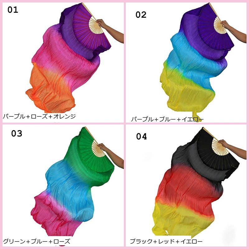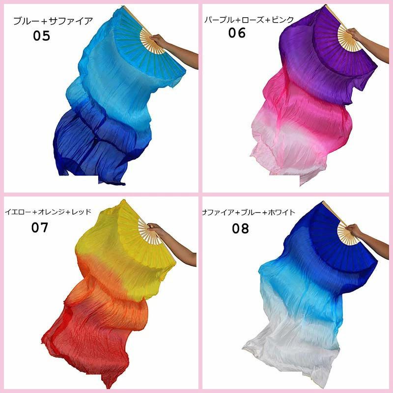 【スーパーSALE半額OFF】ベリーダンス ファンベール シルクファンベール グラデーション 両手 2本セット左手用 右手用 扇子 団扇 舞台 小道具 アクセサリー 演出 飾り ファンベール タイダイ柄 18色選択可