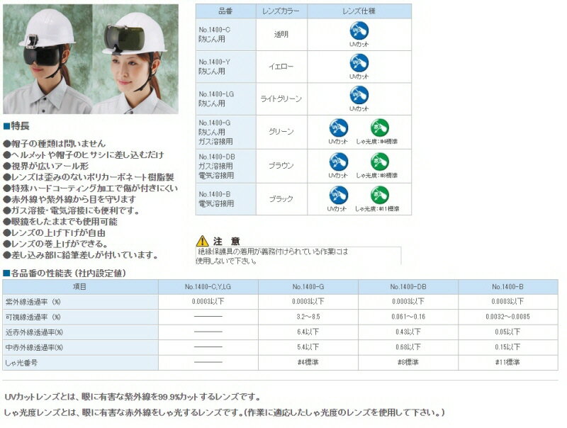 【安全保護具】TOYO SAFETY(トーヨーセフティー)帽子取付用 メガネ(ガス・電気溶接用)NO.1400-DB【573】