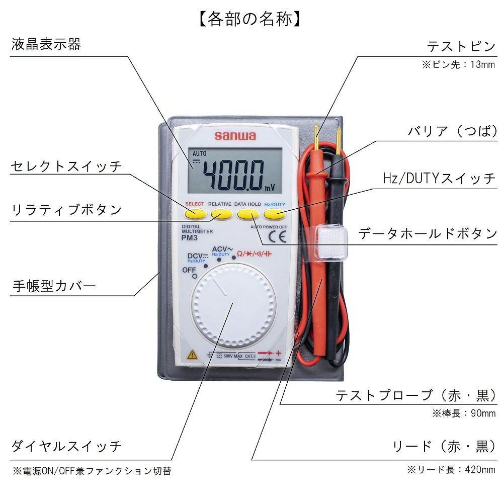 【電気計測用品】三和電気計器(SANWA)デジタルマルチメーター ポケットタイプ PM3【580】