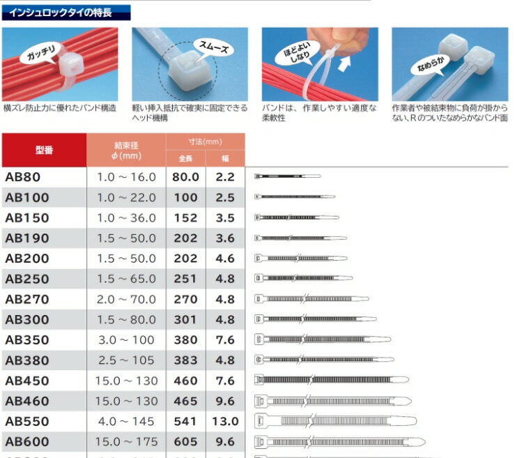 HELLERMANN TYTON 電装工具 商品説明 電気工事を中心に、抜群の国内 シェアを誇る信頼の結束バンド ABタイの標準品で、屋内外でご使用 できる黒色の結束バンドです。 横ズレ防止力に優れ、軽い挿入 抵抗で確実に固定し、バンド部は 作業しやすい適度な柔軟性を 持つのが特長です。 作業者や被結束物に負荷が かからないなめらかな面加工 を施しています。 ※掲載商品の仕様、デザイン、生産国、発売時期は 予告なく 変更する場合がありますので、 あらかじめご了承ください。 ※掲載画像の色彩は実際の商品及び印刷物と 多少異なる場合があります。 ※メーカー希望小売価格はメーカーカタログに 基づいて掲載しています。 発送詳細複数ご注文、またはメール便対応商品をご注文の場合は、ショッピングモールからの自動メールでは送料は確 定しておりません。店舗よりメールにて確定送料をお知らせ致します。こちらの商品(1点) の送料は下記のとおりです。 ご 注文確定前に必ずコチラをご確認の上ご購入をお願い致します・ご確認ください・配送について・返品、交換について {カテゴリ} Hellermann Tyton.Co.,LTD ヘラマンタイトン株式会社 へらまんたいとん 職人 機械 工具 電動工具 手動工具 電動工具 測定工具 計測工具 空調工具 配管工具 電装工具 電設工具 電設資材 設備 道具 仕事 建築 建設 電子計測器 電子計量器 測量機器 電設 電器 電器 交流 電流 通電 遮断 電工ドラム アース 装備品 家電 電化製品 材料 電装 電材 配管 空調 ベンダー 曲げ チューブカッター 銅管 ステンレス管 エアコン ゲージ ポンプ バルブ ドレン ホース ブラシ マニホールド チャージホース パッキン フレア テスター クランプメーター マルチメーター アンテナ コンセント アース ブレーカー ショートタップ ロングタップ プラグ インターネット ギガヒット ランケーブル ルーター ハブ ADSLモデム メディアコンバーター 結束バンド インシュロック 無線 低圧用 高圧用 検査 検電器 検相 計器 絶縁抵抗計 接地抵抗計 複合測定器 漏電遮断器 試験器 電力計 ロガー コンセント 継手部 冷媒 漏えい 圧力計 加圧 温度 気温 室温 冷房 暖房 冷暖房 給湯 給水 ガス 水道管 継手類 充填用アクセサリ ベンダー 曲げ 電気計測用品 内装 資材 大工 土木 工事 現場 作業 業務用 施工 仕上げ 手作業 圧着 被覆電線 アクセサリー 鉄 スチール 塩ビ エンビ えんび テープ 樹脂 非鉄 切削 切断 挟む 穴あけ カッター エアコン クーラー パイプ ラジオペンチ ラジペン バイスグリップ ワイヤー ケーブル ペンチ ニッパー リーマー メーター 皮剥き器 電工用 コードリール 照明器具 延長ケーブル 延長コード 漏電遮断 プラグ タップ WORK DIY TOOL ACCESSORY BOARD WOOD STEEL CUTTER PIPE AIRCONDITIONER WIRE SLIP JOINT COMBINATION PLIERS VICE CLIP STRAIGHT NOSE PRESS BAND HEAVY DUTY PENCH KNIPPER CABLE AIR CONDECTOR ELECTRICAL VOLT TAPE CHARGE GAGE BENDER PUMP BULBE TUBE REAMER TORQUE WRENCH COPPER BRUSH METER TESTER CRAMP Pocket Digital Multimeter BENDER CABLE CORD LAN INTERNET CATV HUB ROOTER INSULOK ■ ご不明な場合はお問合せ下さい。