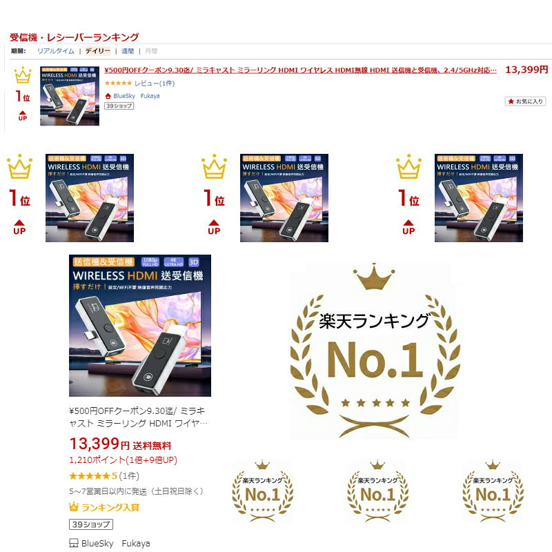 【2000円OFF】【楽天1位】【日本技適認証取得】 ワイヤレス HDMI 送信機と受信機 HDMI無線 ミラキャスト ミラーリング HDMI ワイヤレス 、hdmi 変換2.4/5GHz対応、Type-C対応 360°全指向性 1080P HD 無線 HDMI の延長装置 iphone 15滑らかなビデオ/可聴周波伝達