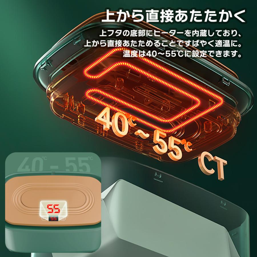 おしりふきウォーマー おむつ替えの時、冷たいおしりふきで拭いて赤ちゃんがビックリして嫌がってしまうことがあります。 おしりふきをあたためることでおむつ替えが気持ちよくなり、汚れが落ちやすいメリットも◎ みんなニコニコ・スムーズに♪年中ご使用いただけます。 USB給電することですぐにあったか。 上フタの底部にヒーターを内蔵しており、上から直接あたためることですばやく適温に。 温度は40〜55℃に設定できます。 画面表示があり、温度調節もしやすく、誰でもカンタンにお使いいただけます。 ※充電はできません。 ※温まるまでにかかる時間は使用するおしりふきにより異なります。 市販のおしりふきをゴムバンドでしっかりと固定します。 カラーはホワイト、ピンク、グリーンの3色からお選びいただけます。 ※おしりふきの材質や含まれているローションの成分によっては、温めることにより乾きやすいものもあります。乾きが著しい場合には、別の銘柄のおしりふきをご使用ください。 ※おしりふきによっては、長時間あたためることにより茶色く変色することがあります。 ※常に電源が入った状態で長時間保温していると、おしりふきが乾燥する原因になります。また、使用頻度が低いと、おしりふきが乾燥する原因になります。長時間使用しない時は電源コードを抜いてください。 ◇ 仕様 ◇ ◆ カラー:ホワイト、ピンク、グリーン ◆ 定格電力:8.5W ◆ 入力電力:5V/2A ◆ サイズ:23×15×11cm ◆ 重量:約400g ※ 小さなお子様の手の届かない場所にてご使用・保管ください。