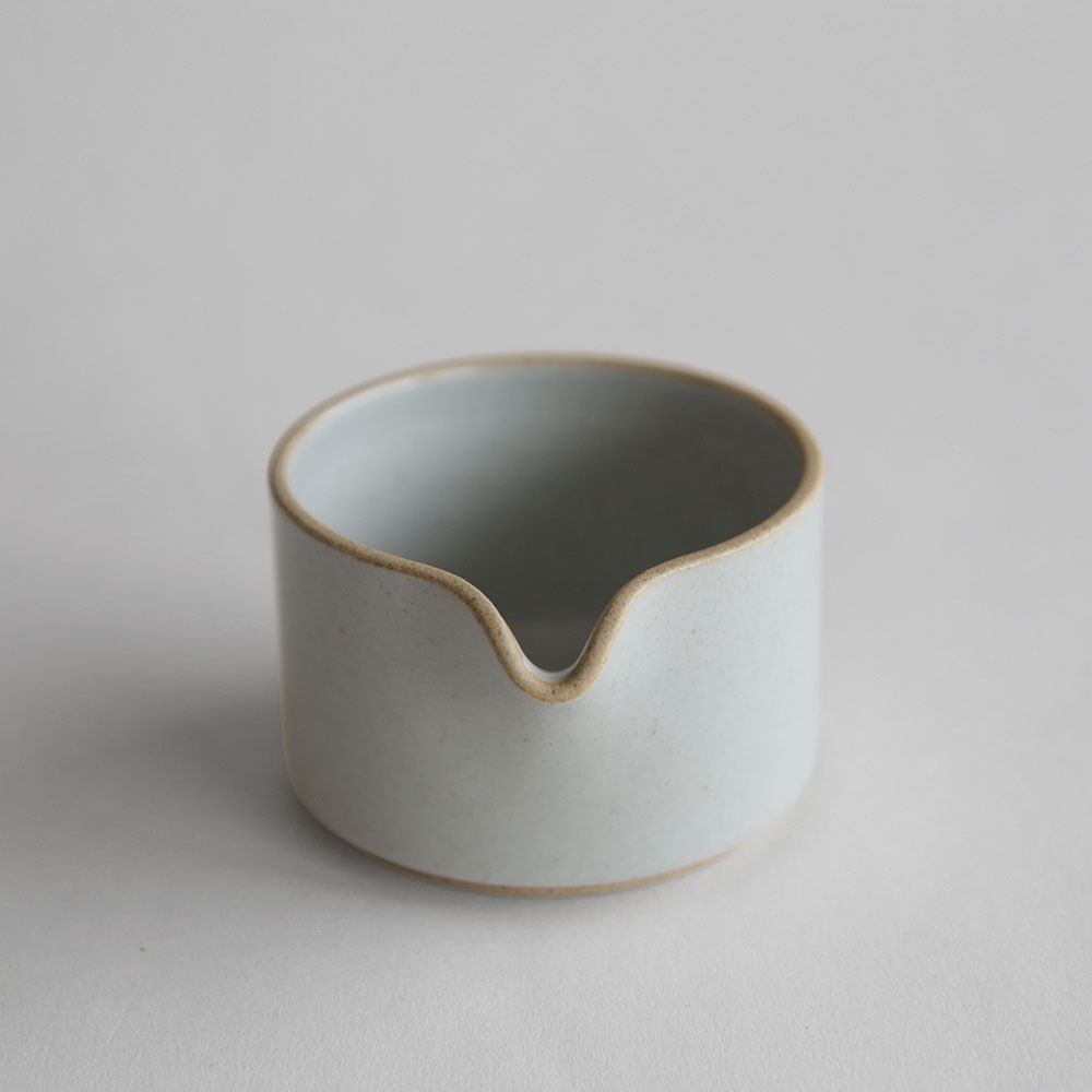 Brand : HASAMI PORCELAIN(ハサミポーセリン) Item : CREAMER(Gloss Gray) / HPM028 / ミルクピッチャー 「HASAMI PORCELAIN」(ハサミポーセリン)は伝統的な遺産を現代的なコンセプトでデザインした波佐見焼のテーブルウェアシリーズです。ディレクションはアメリカ西海岸に拠点を置くデザイナー、篠本拓宏さんによるもの。全てのアイテムが一定のモジュールに従ってサイズ設計されているので、スタッキングや入れ子にして収納が可能になっていたりと機能的にも優れています。 【サイズ】:φ85×H55mm 【材質】:半磁器 【生産地】:長崎県波佐見町 【お取り扱いについて】:電子レンジ:○ / 食洗機:○ / オーブン:× / 直火:× 日本有数の窯業の盛んな地、長崎県波佐見町。この地で約400年前の江戸時代につくられはじめた磁器は、当時から日本各地はもとより、長崎港を経てヨーロッパへも出荷されていました。早くから量産体制が整えられたため、日用の食器としての確かな質と価格を実現したことが知られています。豊かな伝統は、現代まで脈々と受け継がれ、HASAMI PORCELAINは、篠本拓宏(tortoise)のディレクションにより、こうした遺産を現代のコンセプトで革新するテーブルウェアとして生まれました。 HASAMI PORCELAIN(ハサミポーセリン)のアイテム一覧item:MILK PITCHER(Gloss Gray) / HPM028 price:2,000yen+tax brand:HASAMI PORCELAIN(ハサミポーセリン) derection:篠本拓宏(tortoise) 「HASAMI PORCELAIN」(ハサミポーセリン)は伝統的な遺産を現代的なコンセプトでデザインした波佐見焼のテーブルウェアシリーズです。ディレクションはアメリカ西海岸に拠点を置くデザイナー、篠本拓宏さんによるもの。全てのアイテムが一定のモジュールに従ってサイズ設計されているので、スタッキングや入れ子にして収納が可能になっていたりと機能的にも優れています。 SPEC サイズ φ85×H55mm 材質 半磁器 生産地 長崎県波佐見町 お取り扱いについて 電子レンジ:○ / 食洗機:○ / オーブン:× / 直火:× 波佐見から世界へ 日本有数の窯業の盛んな地、長崎県波佐見町。 この地で約400年前の江戸時代につくられはじめた磁器は、当時から日本各地はもとより、長崎港を経てヨーロッパへも出荷されていました。 早くから量産体制が整えられたため、日用の食器としての確かな質と価格を実現したことが知られています。豊かな伝統は、現代まで脈々と受け継がれ、HASAMI PORCELAIN(ハサミポーセリン)は、篠本拓宏(tortoise)のディレクションにより、こうした遺産を現代のコンセプトで革新するテーブルウェアとして生まれました。 アメリカで先行発売され人気となり、2011年に日本でも発売されて以来注目を集め、今ではスタンダードなテーブルウェアとして定着しています。 ミニマルで直線的なデザイン HASAMI PORCELAIN(ハサミポーセリン)のフォルムには、一切の装飾性がありません。日本の伝統的な形態の根本でもある、潔くすっきりとした直線。機能と製造工程の必然性から導かれた、意味のある曲線。シンプルな線のみで構成されたデザインは、いくつもの器が重なり合い、フォルムがリピートすることで、いっそう美しい調和をつくり出します。「HASAMI PORCELAIN」(ハサミポーセリン)の無駄のない佇まいには、生活のための道具にふさわしい普遍性が宿っているのを感じます。 半磁器ならではの心地よい質感 HASAMI PORCELAIN(ハサミポーセリン)の魅力は、器が手や口に触れたときの感覚にあります。半磁器ならではのシャープな輪郭は、陶器よりも引き締まった印象を与えつつ、一般的な磁器よりもやさしく有機的な触感が心地よく感じられます。独特の素材感から生まれるマットな風合いと落ち着いた色彩は、どんな食材とも自然に調和し、料理やドリンクを引き立ててくれます。素地には、天然の天草陶石を原料とした磁器土に、独自の比率で陶土を加えています。かつて波佐見で焼かれていた陶磁器のサンプルを再現し、素材本来の風合いを活かす釉薬を使用しています。 共通モジュールによる”重ねる器” HASAMI HASAMI PORCELAIN(ハサミポーセリン)の器のサイズは、8.5cm、14.5cm、18.5cm、22cm、25.5cm、30cmのモジュールに従って設計されています。マグカップ、ボウル、トレイなど個々のアイテムが共通の直径でデザインされているため、自由なスタッキングが可能で、収納時や運搬時も無駄がありません。ニーズに合わせてスタッキングできる仕組みや、異なるサイズの器が入れ子で収納できる機能性は、日本料理のための伝統的な漆器である重箱からインスピレーションを得ています。重箱と同じように、室内でもアウトドアでも、単体でもセットでも、幅広いシーンで自由に使うことができます。 ベーシックなカラーと豊富なサイズ展開 シンプルなフォルムとベーシックなカラー(ナチュラル、ブラック、グロスグレー)の器は料理を引き立ててくれます。まるで絵を描くように料理を盛り付けてお楽しみ頂けます。またサイズ展開が豊富ですので、あらゆる料理に対応したテーブルコーディネートが可能です。