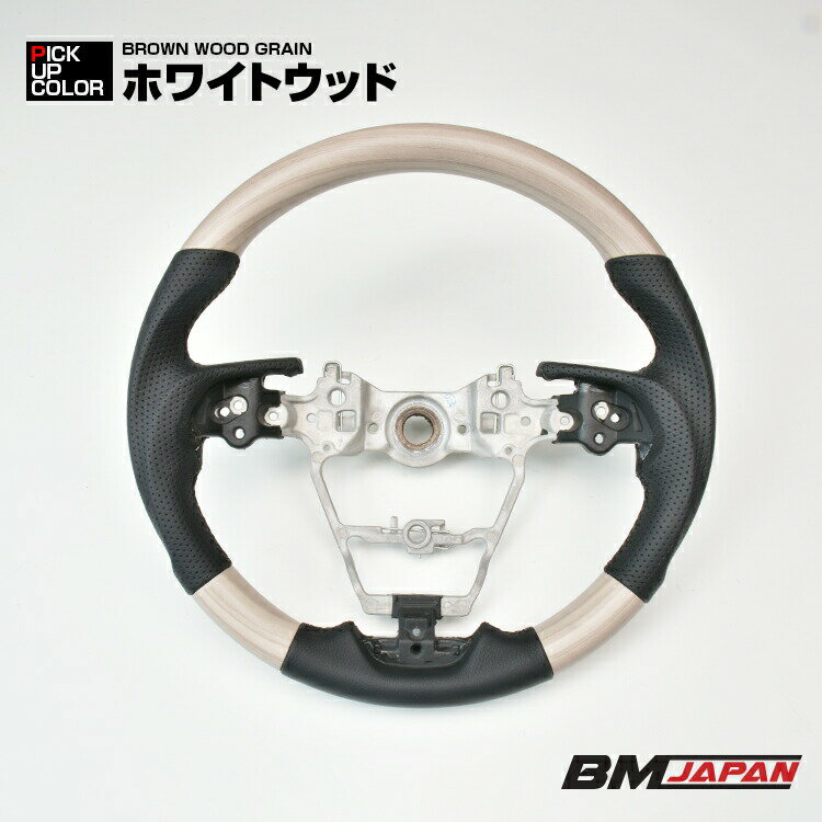 商品説明 メーカー名:BM Japan メーカー品番:ST238-242 商品カラー : グレーウッド[ST238] ホワイトウッド[ST239] メタルブラック[ST240] ピアノブラック[ST241] カーボン調[ST242] 確認事項 適合車種:トヨタ ハリアー 80系 MXUA/AXUH80/85 ※ハリアー80系改良型取付可能 商品到着後は 商品到着後初期不良確認のため、一週間以内にご検品ください。 装着後の商品は初期不良として交換はできませんのでご注意下さい。 取付けの際、事故等がございましても当方では責任を負いかねます。 発送の詳細 運送会社/発送手段は当方指定に限らせて頂きます。 ご注意! エアバッグなどのパーツは純正をそのまま使用します。 ・木目及びレザーカラーは、新車時の近似色で製作しております。 撮影・ディスプレイ環境により色が違って見える場合があります。 ・ステアリングのフレームは車種専用設計による部品となっておりますが 車種別の個体差や製品の個体差によってはステアリングを取り付けた際に水平位置より 回転方向に対して若干ずれる場合がございます。 (トヨタ車を例にしますと最大5.5度ずれる場合がございます。) このような場合、車両側のタイロッドの調整により補正を行うことができますが その費用等につきましてはお客様でご負担ください。 ・ステアリング交換は整備業者等にて必ず行ってください。 社外品ですのでいかなる場合も当方では責任を負いかねます。 取り付け後に不備等がありましても 交換・返品等の対応は一切致しかねます。 また、如何なる理由が有りましても 工賃や損害請求には 一切応じることができません。予めご了承ください。 ・運送上の破損・紛失および初期不良以外のクレームはお受け致しません 必ず仮合わせを行って下さい。 ・仕様は予告無く変更になる場合がございます。