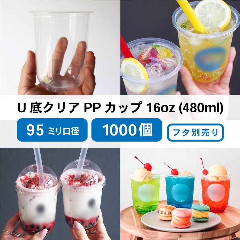 プラカップ クリアカップ PPカップ 95mm口径 16オンスU底クリアカップ483ml 半透明 (※フタ別売り)1000個 ポリプロピレン おしゃれ 可愛い 業務用 使い捨て容器 デザートプラカップ アイスカップ プラコップ