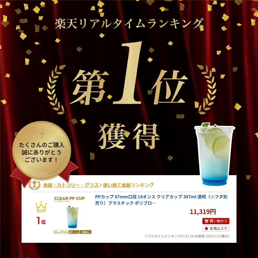 【 プラカップ クリアカップ 】 PPカップ 87mm口径 14オンス クリアカップ 397ml 半透明 (※フタ別売り) プラスチック ポリプロピレン 1000個 ノーマル型 おしゃれ 可愛い 業務用 使い捨て容器 デザートプラカップ アイスカップ 紙カップ テイクアウト プラコップ