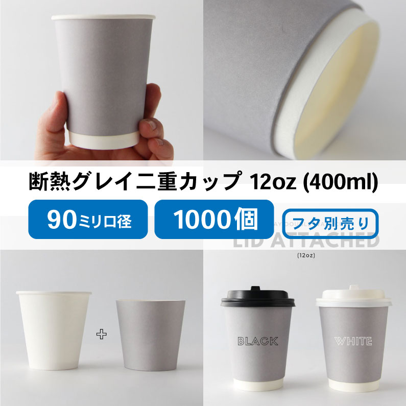 【 紙カップ 紙コップ 】 おしゃれ オシャレ テイクアウト ホット カップ 90mm口径 二重グレー断熱 12oz 1000個 容器 業務用 エコ容器 使い捨て コーヒー コーヒーカップ ティーカップ ドリンクカフェ ホット用 紙カップ 紙コップ 使い捨てカップ