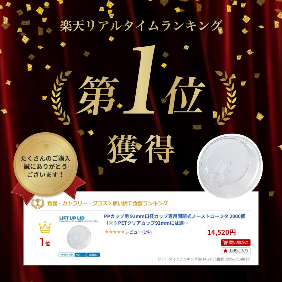 【 プラカップ 】 PPカップ用 92mm口径カップ専用開閉式ノーストローフタ 2000個(※※PETクリアカップ92mmには適合不可)ストロー不要 アイスフタ 平蓋 アイスリッド 炭酸 テイクアウト 宅配 プラスチック プラカップ イベント パーティー ケータリング 業務用