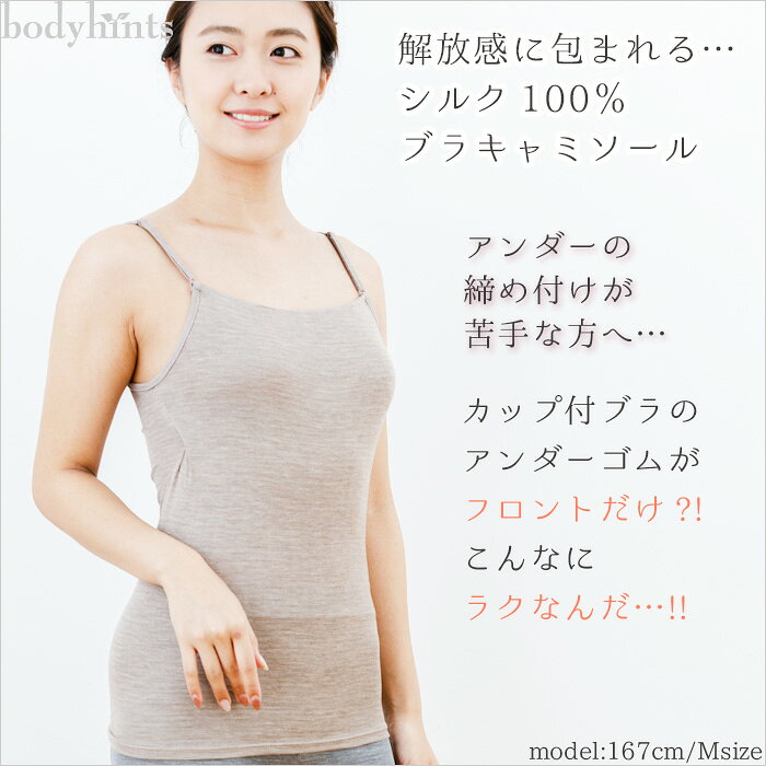 シルク100% キャミソール カップ付 ブラトップ 締め付けない ブラキャミ ノンワイヤー カップ付きインナー カップ付きキャミ アジャスター レディース 下着 ブラ トップス インナー UVカット 日本製 汗取り 敏感肌 保湿 肌着 170双極細絹糸フライス編み
