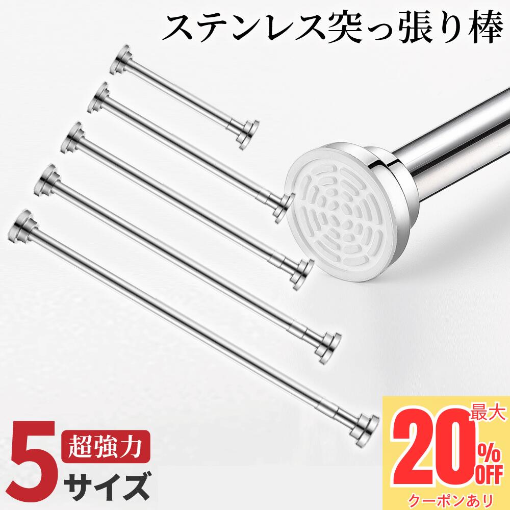 【月間優良ショップ受賞★楽天一位★1年保証】ステンレス 強力突っ張り棒 35cm~250cm 選べる5サイズ つっ張り棒 耐荷重 突っぱり棒 強力 カーテン 衣類収納 ベランダ トイレ お風呂 浴室 クローゼット収納 ハンガー突っ張り棒 伸縮 洗濯物 おしゃれ 強い負荷 滑り止め 屋外