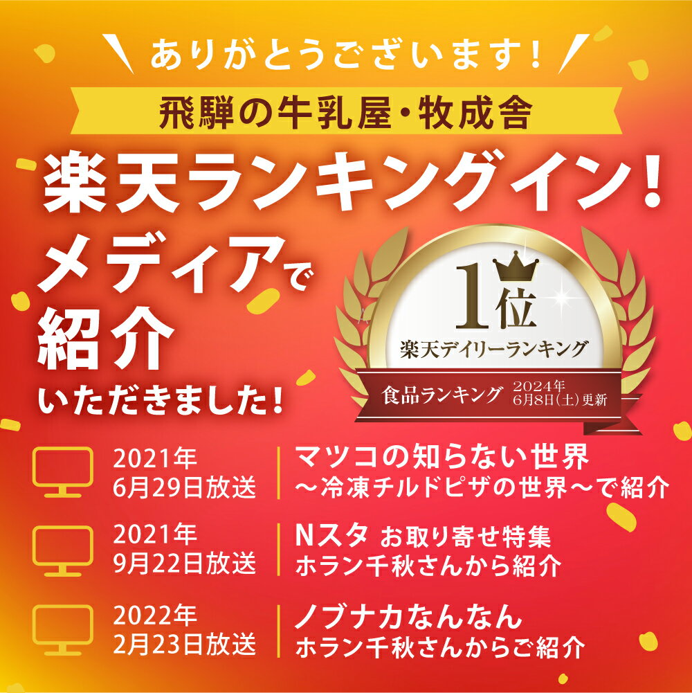 年末 お歳暮 クリスマス ギフトお返しに飛騨の自家製チーズたっぷりピザはいかがでしょう?冷凍ピザは賞味期限も長いので、おうちストックにもおすすめ!商品説明名称冷凍食品(ピザ)原材料名●モッツァレラチーズたっぷりピザ マルゲリータ:ピザクラスト(小麦、その他)、ナチュラルチーズ、トマトミックスソース(トマト、たまねぎ、大豆油、その他)、バジルソース(原材料の一部に乳、小麦、大豆を含む) 内容量ピザ直径24cm(マルゲリータ×4枚) 賞味期限賞味期限60日以上別途商品ラベルに記載保存方法冷凍製造者有限会社 牧成舎 岐阜県飛騨市古川町増島町17−8電話番号 0577−73−2226↓12月1日〜12月11日まで冬の大セール開催中↓ ↓ワンダフルデーエントリーで+3倍&リピート購入で+1倍↓ ↓エントリー&条件達成で最大ポイント10倍↓ ↓さらにLINE追加でオトクなクーポンGET↓ ↓全員対象お得なクーポンGET↓ 【3500円以上のご購入で800円OFFクーポン】 【1万円以上のご購入で2000円OFFクーポン】【同梱専用商品でおすすめ】モッツァレラ入りソーセージ810円【同梱専用商品でおすすめ】贅沢生クリーム搾りたて生チョコ1,598円飛騨の自家製チーズたっぷりピザはいかがでしょう?冷凍ピザは賞味期限も長いので、おうちストックにもおすすめ!商品説明名称冷凍食品(ピザ)原材料名●モッツァレラチーズたっぷりピザ マルゲリータ:ピザクラスト(小麦、その他)、ナチュラルチーズ、トマトミックスソース(トマト、たまねぎ、大豆油、その他)、バジルソース(原材料の一部に乳、小麦、大豆を含む) 内容量ピザ直径24cm(マルゲリータ×4枚) 賞味期限賞味期限60日以上別途商品ラベルに記載保存方法冷凍製造者有限会社 牧成舎 岐阜県飛騨市古川町増島町17−8電話番号 0577−73−2226