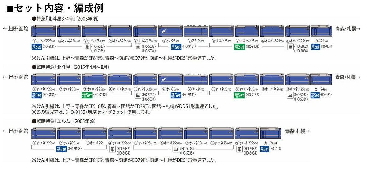 TOMIX JR 24系25形特急寝台客車(北斗星・JR東日本仕様)増結セット 【HO-9132】 (鉄道模型 HOゲージ)