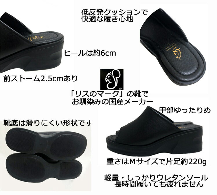 【人気アイテム】【SSサイズあり】厚底ミュール 厚底サンダル 日本製 ミュール サンダル レディースシューズ 仕事履き リスマーク 低反発クッション オフィス 後藤産業 GOTOU SANGYO SSサイズ 軽量 痛くならない