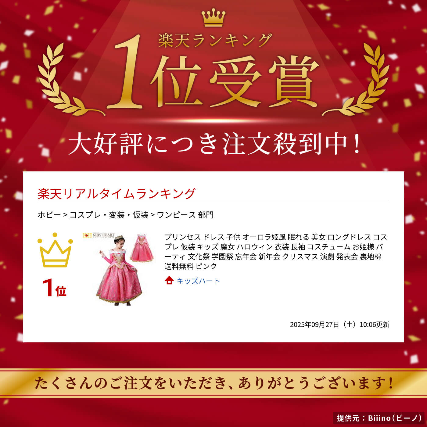 サイズ(100cm)着丈:75cm 胸囲:60cm 袖丈:33cm (110cm)着丈:80cm 胸囲:63cm 袖丈:35.5cm (120cm)着丈:85cm 胸囲:66cm 袖丈:38cm (130cm)着丈:90cm 胸囲:69cm 袖丈:40.5cm (140cm)着丈:95cm 胸囲:72cm 袖丈:43cm (150cm)着丈:100cm 胸囲:75cm 袖丈:45.5cm ※ご注意※ *サイズ表記は平置きで計測した実寸値になっておりますが、計測の仕方により、実寸とは若干(1cm〜2cm前後/厚物は2cm〜3cm前後)異なる場合がございます。 ご了承の上ご購入をお願い致します。 *サイズ選びの際、お手持ちのアイテムとサイズ表を比較された上で、ご購入することをお勧めいたします。 *海外製品のため、「生地を織る際に糸の継ぎ目」や多少の「ほつれ」他の繊維の「混紡」や、形やサイズに多少の「誤差」が生じる場合がございます。 *画像の色は、お使いのモニター環境などにより、見え方の違いがありますので、予めご了承くださいませ。 *濃色系の商品は汗、雨などによって湿った状態で着用中の摩擦などにより、色移りすることがあります。また色移りする製品との洗濯をお避けてくださいませ。素材コットン、ポリエステルカラーピンク生地の厚み普通生地の質感柔らかい透け感なし伸縮性ややあり製造元中国セット内容ワンピース (※セット内容以外は付属しておりません)発送方法宅配便注意事項★サイズについて★ ・商品を平らな面に置き測り記載しておりますが、素材の伸縮性、計測の仕方によっては実寸とは若干(1cm〜2cm前後/厚物は2cm〜3cm前後)異なる場合がございます。 ★カラーについて★ ・商品の撮影には最大限な注意を払っておりますが、閲覧時のモニター環境によりましては実際の商品と若干違うお色味に映ることもございます。予めご了承くださいませ。 ★海外製品について★ ・海外製品のため、同じ商品でもパーツ(飾り物、ボタン、柄など)や、質感などが若干異なる場合があり、同じサイズの商品でも実寸が若干異なる場合もございます。 ・布商品は、製造過程におきまして、糸の継ぎ目や多少ほつれ等が生じる場合がございます。 ・濃色系の商品は汗、雨などによって湿った状態で着用中の摩擦などにより、色移りする事があります。また色移りする製品との洗濯は避けて下さい。 ▸ ほかのコスプレを見る ▸ ほかのプリンセスドレスを見る [ コスプレ 衣装 可愛い かわいい セクシー 子供 キッズ 大人 メンズ レディース 男性用 女性用 ハロウィン イベント 撮影会 展示会 パーティー コンサート 文化祭 学園祭 100 110 120 130 140 150 160 センチ 100cm 110cm 120cm 130cm 140cm 150cm 160cm S M L XL サイズ ]高級感ある華やかなふんわりドレス!プリンセスになりきります♪ 関連商品はこちら