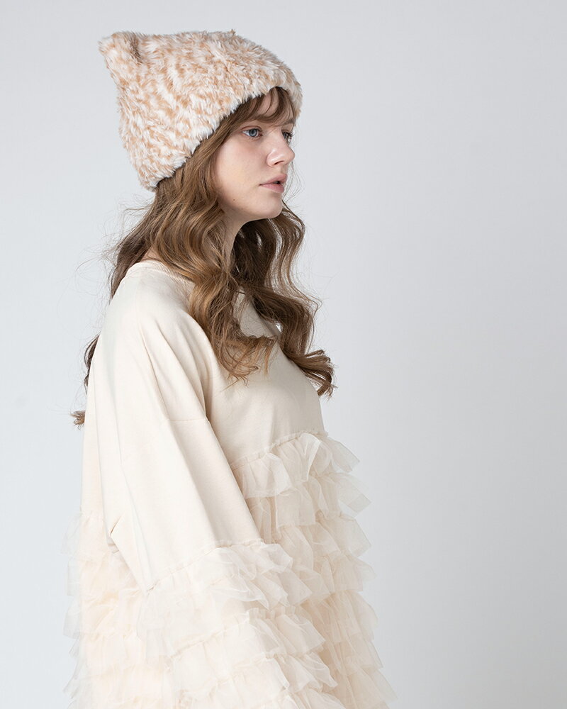 商品情報素材/材質本体/ポリエステル100%サイズ/寸法FREEサイズ(頭囲/56~59cm) 高さ20cm かぶり口幅26cm その他商品説明 イミテーションファーのニット糸を使用し、職人が1枚1枚丁寧に編み上げたニット帽です。引っ掛けなどには 十分ご注意ください。 注意※お使いのモニターにより、実際の商品と異なって見える場合がございます。※計測サイズは目安です。素材などにより、誤差が生じる場合もございます。 s i z e 頭囲高さ幅 フリー56-59cm約20cm約26cm ※高さの表記が同じ場合、デザインや形により被り心地、印象が異なります。着用時の高さを記載致しております。 (平置き)との記載がある場合、素材が柔らかい、伸縮性等の理由から、平置きでの計測サイズを記載致しておりますので、ご確認下さいませ。 モデル(頭回り 約56cm) 着用サイズ、 フリーサイズ(56-59cm) 素材 本体 ポリエステル100% クリーニング ・洗濯不可商品です。お手入れ方法はクリーニング店にご相談ください。 カラー ベージュホワイトブラウンベージュブラックホワイトブラック グレーアイボリー 注意 ・画面上と実物では多少色が異なって見える場合がございます。 ・お取り扱いの前に洗濯ラベルの記載をご確認下さいませ。 ・商品の洗濯ラベルにカラー表記はございません。 ※スタジオ撮影の為、照明などの関係で実際の商品と色合いが異なって見える場合がございます。単品商品の撮影画像が実際の商品と色合いが近くなっておりますので、ご参照下さいませ。