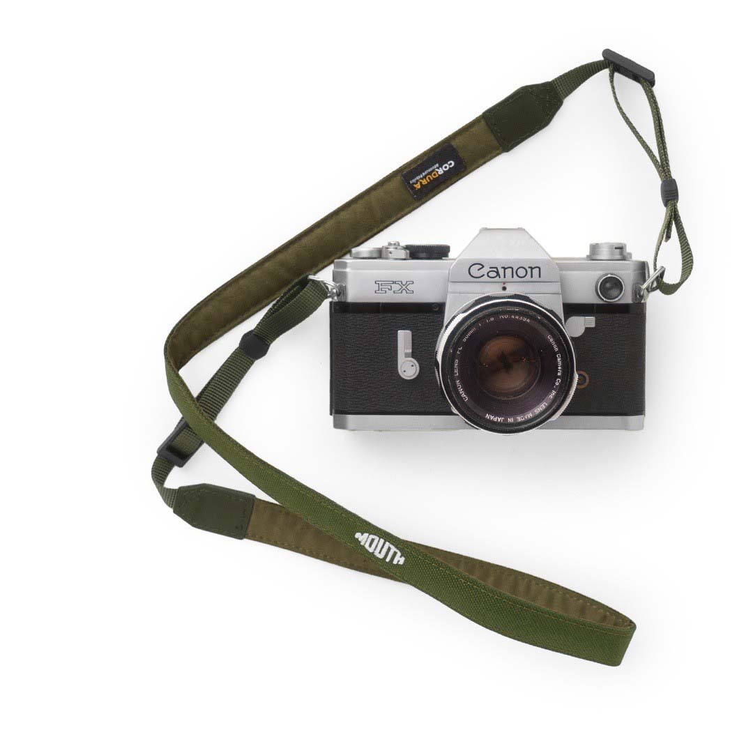 生産国 Made in China(中国製) 素材 Material:コーデュラナイロン(表地)、ポリエステル(裏地)、パーツ(本革)、先ヒモ(ポリプロピレン) サイズ [20mm]Size:ストラップ本体幅 約20mm、長さ 約700mm /先ヒモ幅 約10mm、長さ 約360mm【主な適応機種】マイクロフォーサーズ/レンジファインダーカメラ/コンパクトデジタルカメラ/チェキ (レンズ込みの重量が1.5kg以下のカメラ対応) [30mm] Size:ストラップ本体幅 約30mm、長さ 約720mm /先ヒモ幅 約10mm、長さ 約360mm 【主な適応機種】小型一眼カメラ/ミラーレスカメラ(レンズ込みの重量が1.5kg以下のカメラ対応) [40mm]Size:ストラップ本体幅 約40mm、長さ 約720mm /先ヒモ幅 約10mm、長さ 約360mm【主な適応機種】大型/小型一眼レフカメラ(レンズ込みの重量が1.5kg以上のカメラ対応)※大型レンズ使用にも対応 カラー BLACK、CHARCOAL、COYOTE、OLIVE コメント 耐久性に優れたコーデュラナイロンの表地と肌触りの良いシンセティックスエードの裏地を使用した40mm幅のカメラストラップ。10mm幅の先テープでカメラに取り付けられ、首掛けや手首巻きにも適したしなやかさが特徴。ナイロンの7倍の強度を持つコーデュラナイロンと、使い込むほど味わいが増す本革パーツを組み合わせ、クッション性と柔軟性で撮影時の操作性を向上。MOUTHのニューカメラストラップ「Yummy CAMERA STRAP CORDURA」が登場します。 メイン素材にナイロンの7倍もの強度を持つ耐久性に優れたコーデュラナイロンと、レザーパーツには耐久性もあり使い込むほどに味が出る本革、肌触りの良いシンセティックスエードを裏地に採用し、丈夫な素材としなやかな素材を組み合わせました。適度なクッションと手に巻き付けて使えるしなやかさで撮影時の快適さと操作性を追求しました。 20mm、30mm、40mm幅の展開で様々な機材に対応します。 ストラップを首からかけた時に後ろから見える位置に配置されたロゴがポイント。