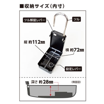 大容量保安ボックス錠 スペアキーボックス ビック 複数の鍵・カードキー・タグ付きキーを収納可能のボックス付南京錠 複数の鍵はもちろん、カードキーやタグ付きキーを収納が出来る大容量のボックス付の南京錠です。 防犯性に優れており鍵の受け渡しや、倉庫や展示場など共有するカギの保管に最適。 ダイヤルは上方向に回すと「0」で止まるので、夜間などの視界が悪い時でもダイヤルが合わせやすくなっております。 レバーハンドル用リングを使用すれば、レバー式ドアノブへの取り付けも可能です。 カギ ダイヤル 南京錠 ボックス 防犯 複数 カードキー 収納 夜間 倉庫 展示場 イベント レバーハンドル 概要 パッケージサイズ W 180 × H 180 × D 45 mm 収納サイズ(内寸) W 72 × H 112 × D 28 mm レバーハンドル用リングサイズ 直径 27 mm 重量 822g