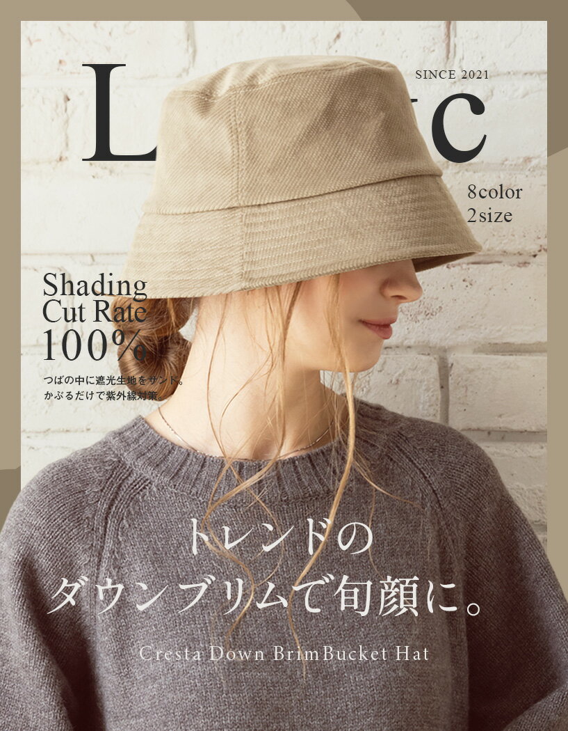 帽子 レディース 大きいサイズ バケットハット AW バケハ 完全遮光 遮光100% UVカット 秋 冬 秋冬 防寒 小顔効果 56-62cm【クレスタダウンブリムバケットハット】 gim