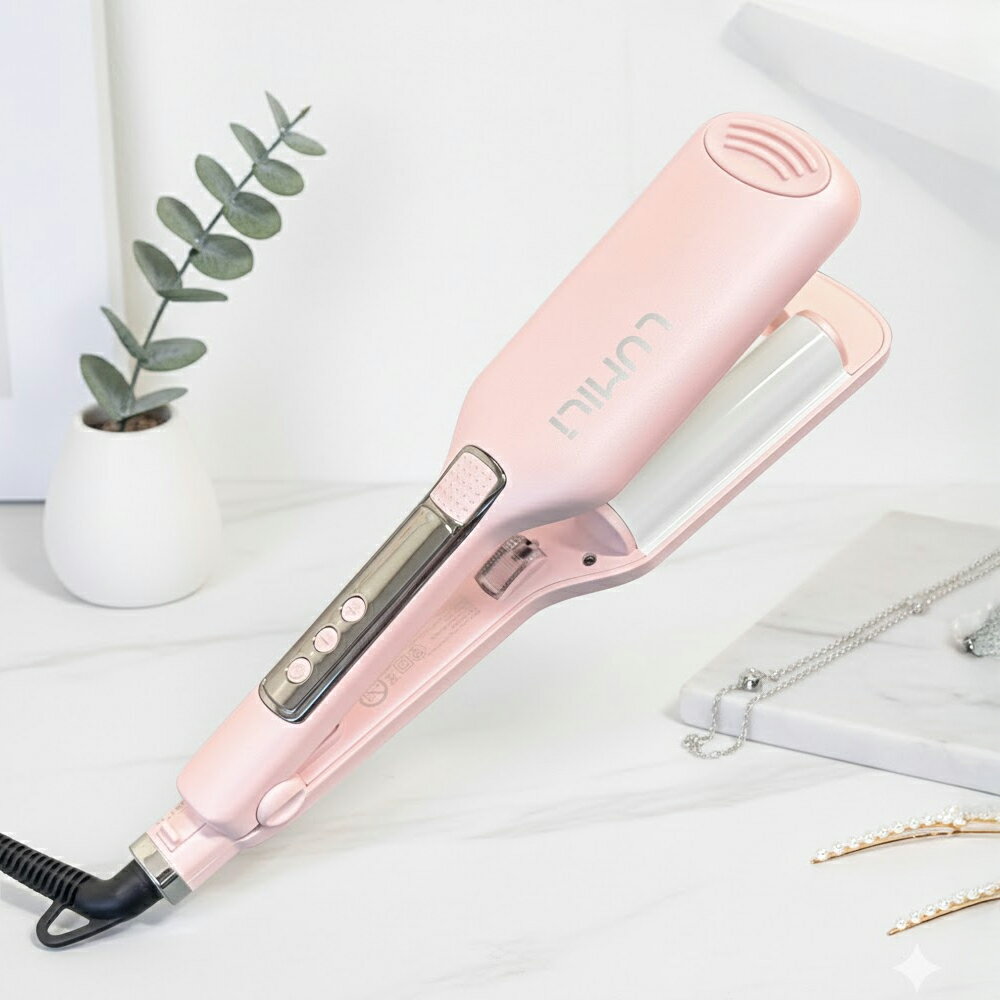 LUMILi イージーウェーブヘアアイロン テクニックいらず! 簡単ふわふわウェーブ巻き♪ スタイリングが苦手な方でも簡単なウェーブヘアが5分で完成! テクニックいらずで最短でふわふわウェーブが作れるイージーウェーブヘアアイロン。 ■5秒で簡単ウェーブ巻き お出かけ準備が時短できるヘアアイロンが誕生。 スタイリングが苦手でも、簡単にふわふわなスタイルが完成します。 ■1000万+のマイナスイオンで髪に優しい マイナスイオン発生機能付き。 髪の毛の静電気をおさえ、髪のうるおいを保ちます。 マイナスイオン発生機が内蔵、大量のマイナスイオンが髪の表面をカバーします。 ■PTC加熱モジュール PTC加熱モジュールによりセラミックパネルが素早く加熱。 温度を一定に保ち、スタイリングの効率を向上します。 ■オイル配合セラミック ヘアエッセンスで髪のダメージまでアプローチ。 ツヤのある髪の毛に導きます。 ■360度回転コード ワンボタンでプレートロック、360度回転コードで使いやすい。 さらに電源コードが2mあるので、コンセントが遠くても便利にお使いいただけます。 ■ 商品仕様 ■ 本体サイズ 約290×35×65mm 本体重量 約650g コード長さ 2m パイプ径 26mm プレート加工 PTC加熱モジュール+オイル配合セラミック イオン 有 最高温度 201℃以上 温度調節機能 14段階 立ち上がり時間 約30秒 電源方式 交流(コード)式 使用可能電圧 AC100-240V ・ 入荷時期によってパッケージは多少異なる場合があります。 ・ 掲載画像はイメージであり、実際の製品とは多少異なる場合があります。 ・ 製品の仕様は品質の向上・改善のため、予告なく変更となる場合があります。