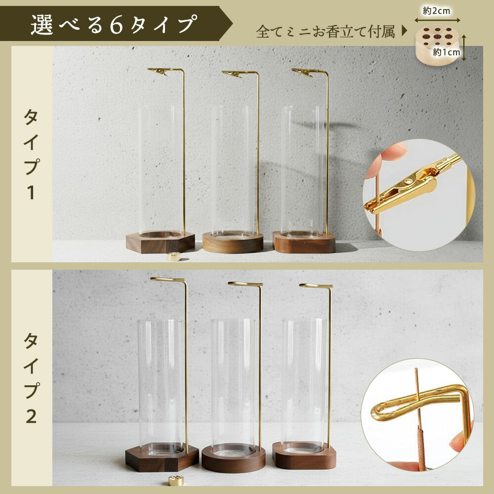 【インテリア専門家×作業療法士 W監修】 お香立て 線香立て おしゃれ ガラス デザイン 灰がこぼれない 台座 六角形 円形 四角形 ミニお香立て付属 取付簡単 お手入れ簡単 天然木使用 クルミ木材 耐高温 インセンスホルダー モダン
