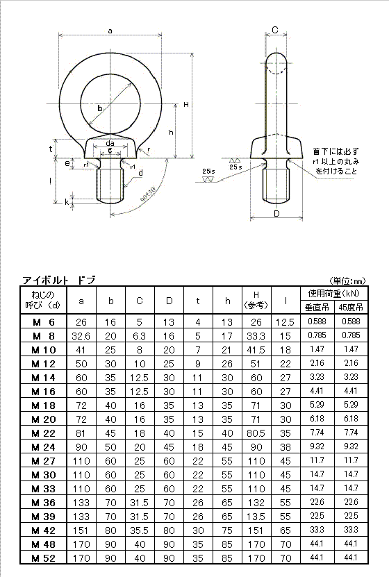 ■モーター、配電盤、工作機械など重量物の吊上げ時に使用。 電気メッキに比べ耐食性に優れており特に屋外環境下で有効です。 ●サイズ:M12