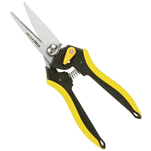 ■切る物、作業内容、手の大きさなどに合わせてグリップの開き幅を2段階調整が可能。 ■R刃採用で、スムーズなくいつき、軽い切れ味 ■すべりにくいラバー付グリップ。 ■切れ味の良いハイカーボンスチール刃にさびにくいハードクロームメッキを施しています。 ■作業が楽なバネ付グリップ。 ※開き幅の調整は、刃を閉じた状態でスイッチの切り替えをしてください。 ●様々な素材をカット ●ブリキ・アルミ・プラスチック・布・紙・ビニール・アルミ線・針金など ●切断能力(刃部) アルミ板 1.0mmまで銅板 0.5mmまでトタン板・ブリキ板 0.5mmまでプラ板 1.2mmまで皮革 4.0mmまでゴム板 4.0mmまで ●切断能力(ノッチ部) アルミ線・銅線 2.5mmまで針金 2.5mmまで 刃部材質/SK-5 ハードクロームメッキ 刃部硬度/HRC53-55 グリップ材質/PP&TPR ※数値は参考目安です。使用状況により若干異なります。 使用上の注意 ※鋭利な刃物です。ケガのない様、取扱いには十分注意してください。 ※本品を表示用途以外の事に使用しますと、切れ味を損なう場合があります。 ※作業時は安全手袋等の保護具を使用してください。 ※横方向にコジないでください。刃欠けの原因になります。 ※作業後は汚れを取り、ネジや可動部に油をつけてください。 ※刃を閉じて、幼児の手の届かない安全な場所に保管してください。 ※一度硬い素材を切断した後には、布・ビニールなどやわらかい素材が切りにくくなる事があります。 ※やわらかい素材を切断する場合は専用鋏としてご使用ください。 ※ピアノ線や鋼材・鋼線など硬く熱処理された素材には使用できません。 ※刃先に行くほど、切断能力は低下します。 ※硬いもの・厚いものの切断は刃の奥のほうで行って下さい。 ※非絶縁工具ですので、通電しているものには使用しないでください。