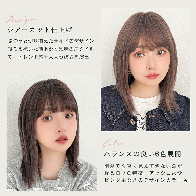 「 シアーカットロブ 」 ウィッグ 自然 ミディアム ボブ ロングボブ フルウィッグ レディース ウイッグ ウルフ 前下がり ストレート レイヤーカット ハイトーン かつら 女性 医療用ウィッグ 黒髪 金髪 コスプレ ハロウィン 普段使い 推し活 イベント FKR