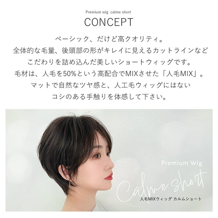 [返品・色交換OK] 医療用ウィッグ 人毛 人毛50% ウィッグ 自然 人毛MIX ショート カルムショート ショートボブ ショート人毛 フルウィッグ 人毛ミックス ウイッグ かつら 医療用 人毛ウィッグ バレない 抗がん剤 黒 茶 脱毛症 普段使い シンプル ナチュラル 大人 綺麗