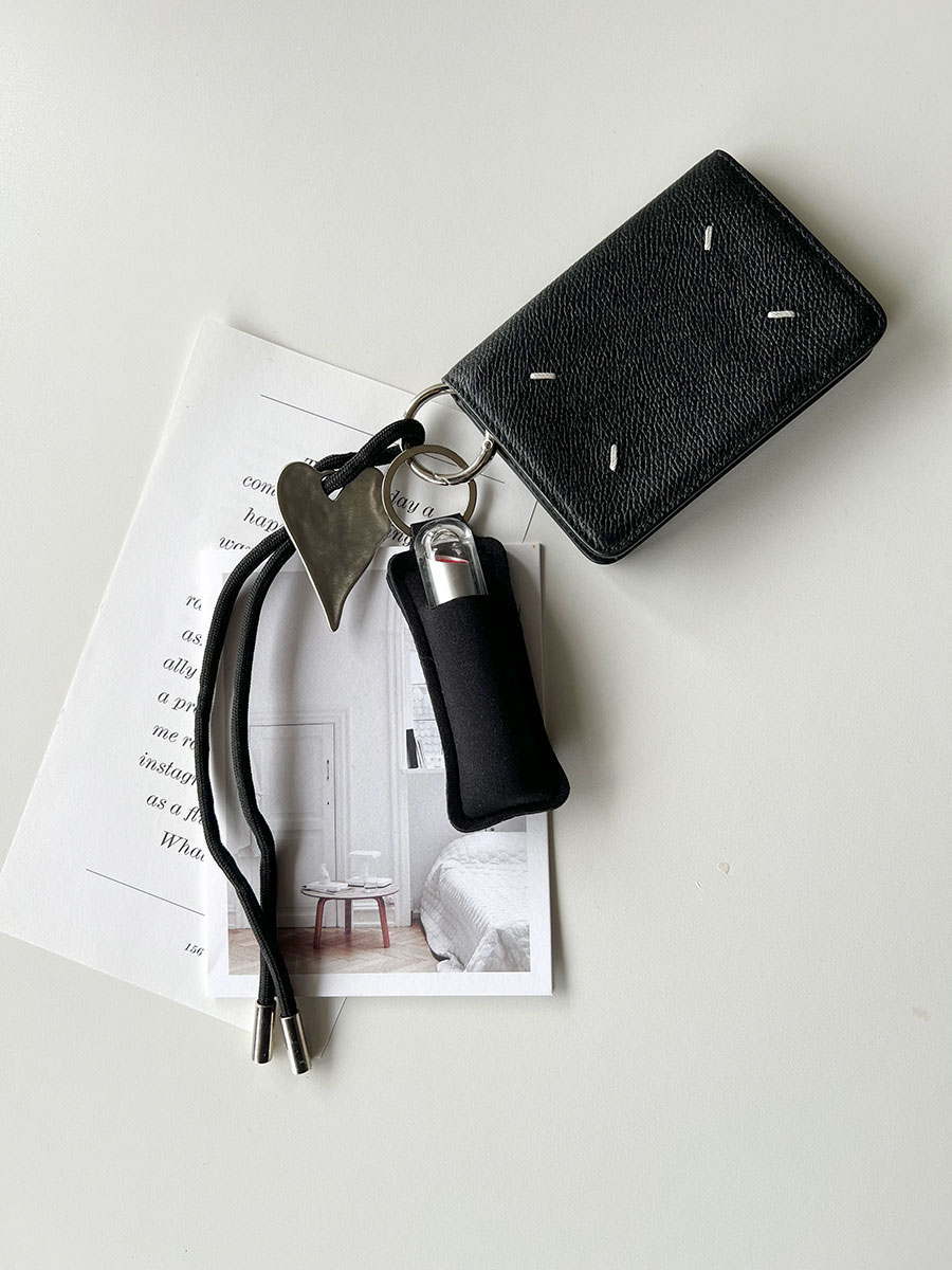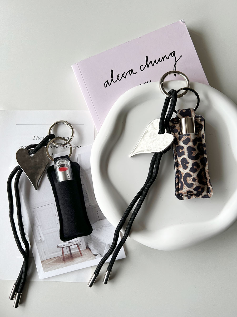 【週末限定◆3%オフクーポン】シルバー ハートチャーム リップケース ハートモチーフチャーム LIPケース付き 韓国チャーム じゃらじゃら付け バッグチャーム ブラック シルバー ヒョウ柄 レオパード柄 黒