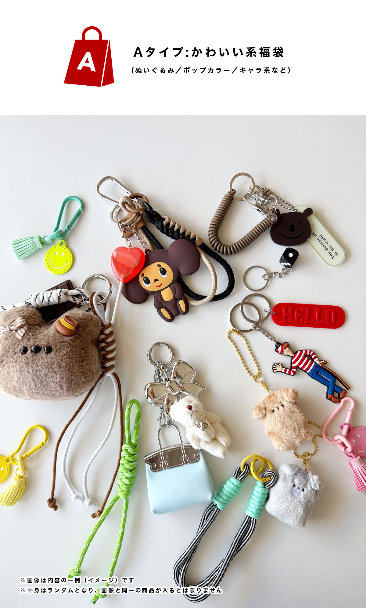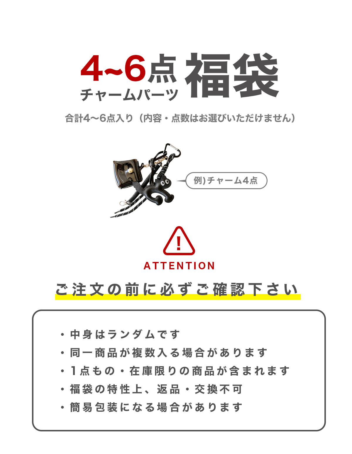 世界にひとつだけのバッグチャームが作れる、お得な福袋です。! 自分だけのオリジナルバッグチャームが作れる パーツ福袋(2026円)が登場!チェーン・チャーム・パーツなどを組み合わせて、 その日の気分やバッグに合わせてアレンジ可能。中身はパーツ4〜6点入り(+αが入ることも!) 開けるまでのお楽しみ感も福袋ならではです。 選べる2タイプ ご購入時にお好みのテイストをお選びください。 ・かわいい系 ハート・リボン・ぬいぐるみなど、ガーリーでやさしい雰囲気 ・クール系 シンプル・モード・大人っぽいデザイン中心 ※福袋のため、カラー・デザインはお任せとなります。 ※ご注意 ・福袋商品のため、内容の指定・交換・返品は不可 ・パーツはランダム封入となります ・画像は一例です ヤマト運輸ネコポス便での発送となります。配達指定不可。関連商品【週末限定◆3%オフクーポン】りぼん パール くま バッグチャーム ぬ...【週末限定◆3%オフクーポン】アイスクリーム 板チョコチャーム チェッ...1,890円1,990円【週末限定◆3%オフクーポン】モノクロ キティちゃん カナビナ付きポー...【週末限定◆3%オフクーポン】COFFEEチャーム パンチャーム 星 ...1,990円1,990円【週末限定◆3%オフクーポン】ファーコート バッグチャーム エコファー...【週末限定◆3%オフクーポン】バッグチャーム プレッツェル パラコード...1,990円1,990円【週末限定◆3%オフクーポン】ベアーチャーム うさぎチャーム アニマル...【週末限定◆3%オフクーポン】※アウトレット アンティーク風 ハートニ...2,480円1,990円【週末限定◆3%オフクーポン】くまとチョコと野球チャーム バッグチャー...【週末限定◆3%オフクーポン】USA雑貨 立体ジェリーラバーキャラクタ...2,490円1,990円デイリー使いのバッグにプラスするだけで、一気にオシャレ度アップ