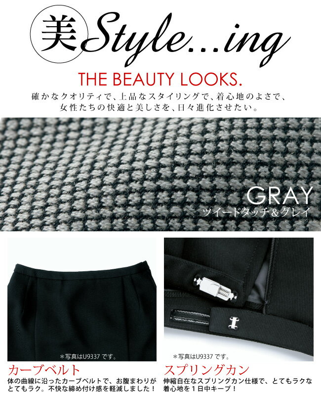 ・メーカー希望小売価格はメーカーカタログに基づいて掲載しています。*掲載カラーは、照明等や生産時期により現物と多少異なる場合がございます。 素 材〔シックバーズアイ〕 シックバーズアイ ストレッチ ポリエステル72% 毛28% ツイードタッチ&グレイ 特 徴 ★両脇ポケット★すべり止めテープ★ 【オールシーズン対応】【家庭用洗濯機仕様】 トレンドのツイードタッチのグレイカラーAラインスカート。 事務服(オフィス服)スカートとしてぴったりのAラインスカートです。 ■カーブベルト 体の曲線に沿ったカーブベルトで、お腹回りがとてもラク。不快な締め付け感を軽減しました。 ■スプリングカン 伸縮自在なスプリングカン仕様で、とてもラクな着心地を1日中キープ! ■オールシーズン対応 一年を通して着られるオールシーズン対応のAラインスカートです。 メーカー名 ヤギコーポレーション ユニレディ(UNILADY)