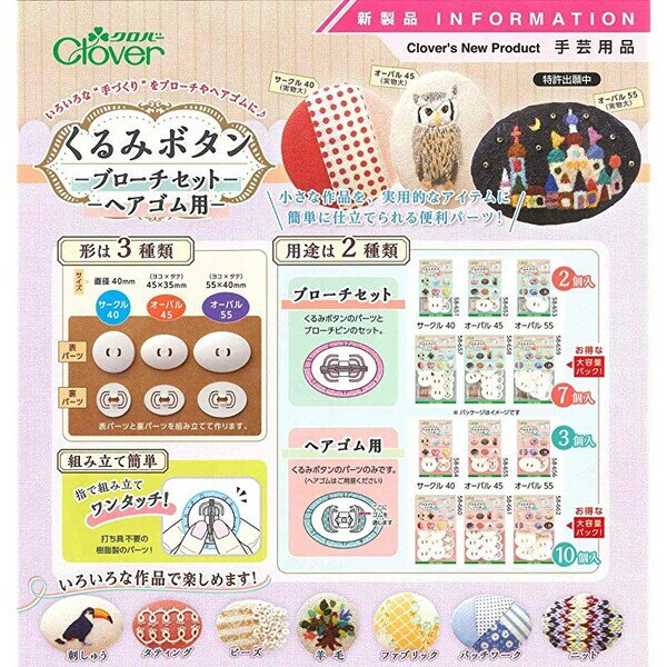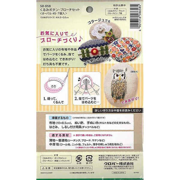 くるみボタン ブローチセット オーバル45 7個入 アクセサリー パーツ クロバー 58-658 - 送料無料※800円以上 メール便発送