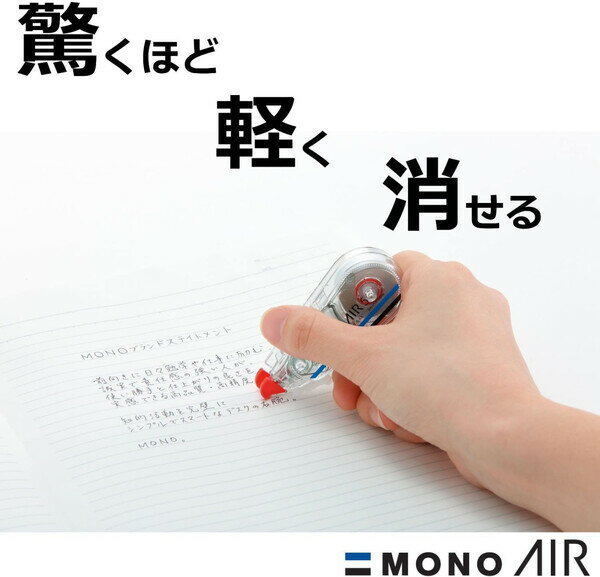 商品名トンボ鉛筆 修正テープ MONO AIR モノエアー 詰め替えタイプ 本体 4.2mm幅 詰め替えテープセット説明使い切るまで、驚くほど軽く消せる!新機構「エアータッチシステム」搭載の修正テープ。【仕様】本体と詰め替えテープカートリッジ2個のセットです【テープ】幅4.2mm×10m巻き【仕様】エアータッチシステム搭載/コンパクトボディ/紙面密着向上テープ/手ブレ補正ヘッド/静音設計品番CT-CAX4 CT-CAR4この商品について 必ずご確認ください配送についてメール便での配送になります。→ご利用の際は必ずお読みください 最低購入価格について 当店では、最低購入金額を800円(税込)以上としています。 →詳細はこちら返品→返品・交換・キャンセルについて※メール便は、日時指定、代金引換、ギフトラッピング・熨斗サービスに対応しておりません。