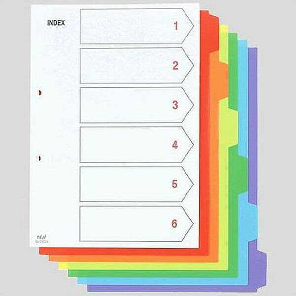 テージー カラーインデックスPP 2穴 6山 6色 丈夫 長持ち IN-1406 - 送料無料※800円以上 メール便発送