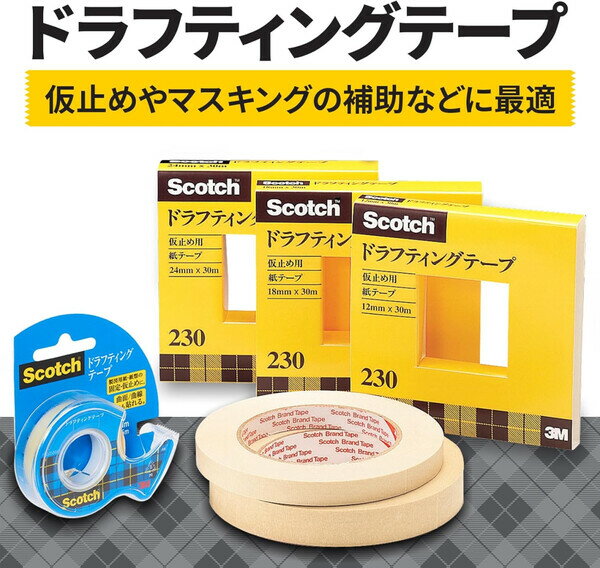 3M スコッチ マスキングテープ ドラフティングテープ カッター付 紙箱入り 12mm×30m 230-3-12 230-03-12 - 送料無料※800円以上 メール便発送
