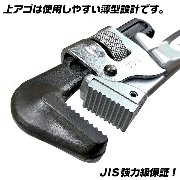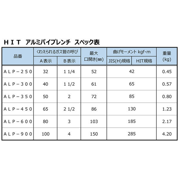 HIT アルミ鍛造製パイプレンチ 900mm 最大口開き 150mm 100A 4 軽量 アルミニウム合金 鍛造 強力型 上アゴ 薄型設計 亜鉛メッキ鋼管 白管 配管 ガス 水道 空調 設備 機械 工場 プロ 丸棒 日本製 ALP-900 ヒット商事 東邦工機
