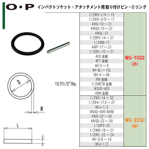 商品情報 メーカー FPC品番 WG-1022仕様・スペック FPCインパクトソケットの純正部品。ソケット等の元の部分に装着し、落下を防ぐための必需品です。※各種対応品は画像をご覧ください。差込角(mm):12.7(1/2)サイズバリエーション差込角12.7mmソケット用(小)差込角12.7mmソケット用(中)差込角19.0mmソケット用(小)差込角19.0mmソケット用(大)差込角25.4mmソケット用インパクトソケットの落下防止対策必需品! 【オーリングとピンのセット】 2