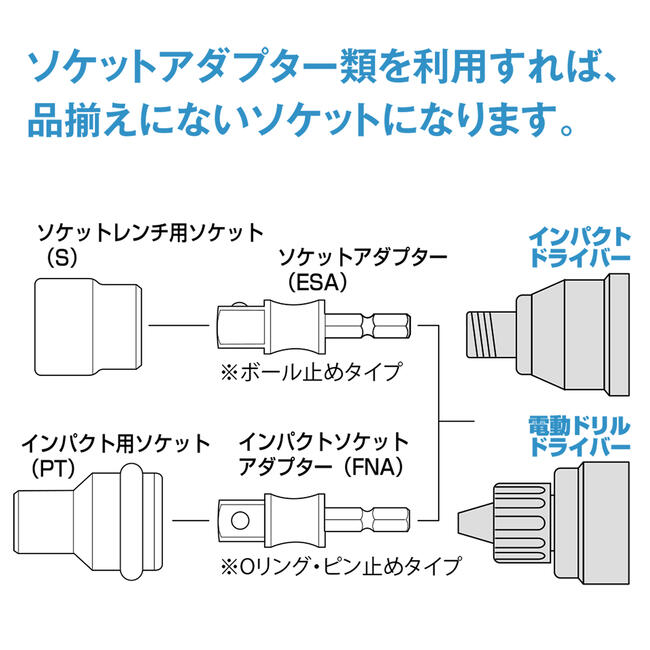 トップ工業 インパクトドライバー用ソケットアダプター 凹6.35mm 凸12.7mm 変換アダプター ボール止めタイプ オーリングピンタイプ 電動ドライバー 18V対応 電ドル用 1/2 4分 日本製 ESA-4D FNA-4D TOP