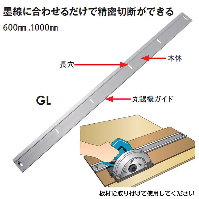 MKK 電動丸鋸用ガイド定規 ガイドライン 1000mm 板に取り付けて使える 石膏ボード ガイド 精密電気丸ノコ 丸鋸定規 直線型 墨線 長穴 軽量 アルミニウム製 大工 建築 大工道具 日本製 GL-1000 モトコマ