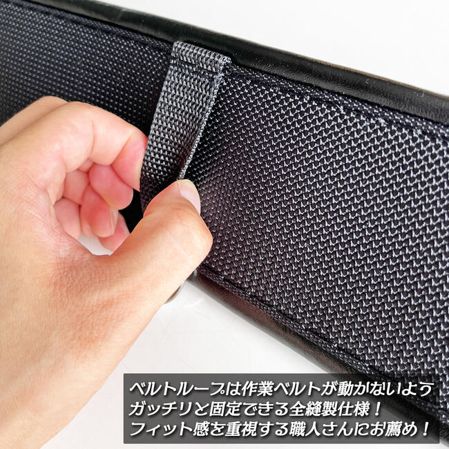 商品情報 メーカー 鳶壱品番サポートベルト全縫仕様・スペック 【サイズ】全長:750mm、幅:90mm【材質】表面:ナイロン、裏面:合皮レザー【仕様】ベルトループ全縫い付け仕様【カラー】ブラック【生産国】日本■腰回りをピッタリ包み込む全長750mm仕様のロングタイプを採用!重たいものを下げた際ズレにくい5本のベルトループ付き仕様です!●軽量で質感の良いナイロン素材を表面に採用しました。●裏側は体系を選ばずフィット感に優れる装着が可能なPVCレザーを採用しました!●ベルトループは全て縫製でガッチリ固定したタイプ。作業ベルトとのズレを極限に押さえフィット感を重視させました。●ベルトループの間隔は腰袋を中心に装備した時に空いた隙間に工具差し関連を装着出来る!スペースのサイズ設計まで計算されたサポートベルトです!●安心と信頼の日本製。腰道具の連結や腰痛対策等に最適なサポートベルトです。バリエーション帆布とレザーの胴当てベルト(全長670x幅90mm)プロスペックサポーター(全長700x幅130mm)サポートベルト700 type-1 全縫(全長750x幅90mm)サポートベルト700 type-2 全開(全長750x幅90mm)ベルトループは作業ベルト連結時にズレがない全縫製仕様!750mm全長のロングタイプでしっかりと腰回りに装着が出来る、ナイロンとPVCレザーを使用したハイブリッド素材のプロ仕様サポーター! 2