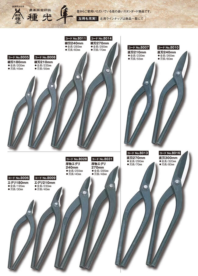 種光 本職用 隼 直刃 スタンダードシリーズ 右利き用 左利き用 金切鋏 板金鋏 板金道具 板金工具 最高級金切鋏 燕三条 日本製 ツボタ