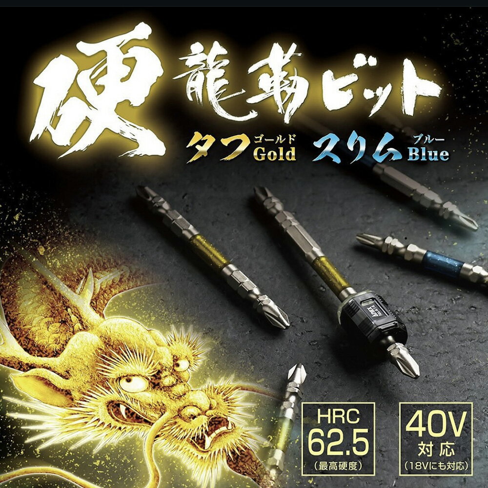 商品情報 メーカー アネックスツール品番 ARTK7-065L / ARTK7-085L / ARTK7-110L // ARKS7-065L / ARKS7-085L / ARKS5-110L規格サイズ +2x65,+2x85,+2x110仕様・スペック 【ビットタイプ】タフ(スタンダードタイプ:ARTK)、スリム(スリム先端タイプ:ARKS)、【ビット本数】7本【付属品】蓄光マグキャッチ(#414)【対応ボルト規格】18V、36V、40V【生産国】日本■メーカー70周年を記念して限定生産された数量限定の硬龍靭ビットシリーズ!通常の黒龍靭ビッとは別にサビにくい無電解ニッケルメッキを施し、さらに暗闇で光る蓄光タイプのマグキャッチを付けた限定仕様です。●タフゴールドは先端カケに強い仕様!ネジ頭のサイズはスタンダードタイプです。●スリムブルーはネジ頭が見やすいスリム先端タイプ!設備工事や板金作業まで幅広く人気の先端形状です。●無電解ニッケルメッキを施して錆びに強い仕様に追加加工しています。●両頭タイプなので使い勝手は抜群です。●通常品とは異なる蓄光仕様のマグキャッチをセット!暗闇でリングが光り、暗く狭い場所でも見やすく使い勝手が良いです。●全工程を日本国内で行う完全日本製。高硬度・高靭性で摩耗や折れに強いプロ仕様ドライバービットです。メーカー創立70周年を記念して別注制作された限定仕様の龍靭ビット!40Vまで耐えられる高耐久・高靭性の黒龍靭ビットに無電解ニッケルメッキを施し、防錆効果をアップさせた硬龍靭ビットシリーズ!暗闇で光る蓄光リングを装備した限定マグキャッチを付けた数量限定アイテムです! 【折れや欠けに強いタフゴールド、頭が見やすく作業性の良いスリムブルーの2パターンで数量限定にて登場!】 2