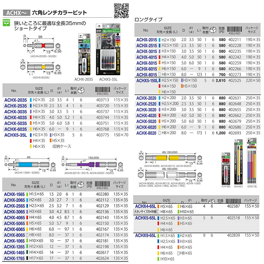 ANEX 六角レンチカラービット 差込角6.35mm インパクトドライバー・電動ドライバー用 ヘキサゴンビット ACHX 兼古製作所 アネックスツール ANEXTOOL