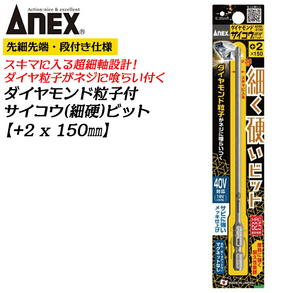 ANEX ダイヤモンド サイコウビット +2 150mm 細硬ビット 細軸タイプ φ3.8先端 No.2 段付きタイプ 狭所 ウッドデッキ テーパー形状 国産ビット ダイヤ粒子 日本製 ADSK-2150 アネックスツール