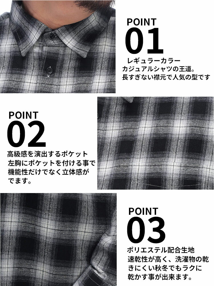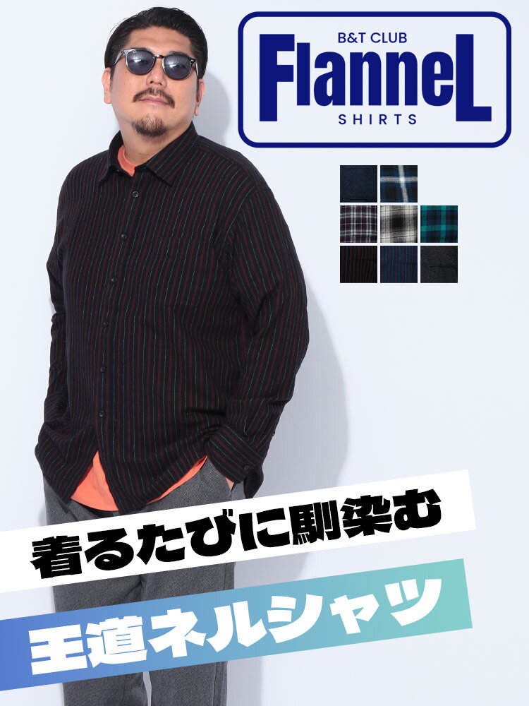 やわらかな肌ざわりのフランネル素材を使用した、B&T CLUBの長袖シャツ。落ち着いた色合いのチェック柄と、着回ししやすい無地の2タイプをご用意しました。一枚でも、Tシャツの上に羽織るスタイルでも活躍する、これからの季節に欠かせないアイテムです。ゆったりとしたサイジングで、ストレスフリーな着心地も魅力です。COLORSWhich color are you going to choose?DETAILcollar pocket sleeve button hem printed tag and more...ANGLEfront and side and back' s angle are introducedVARIATIONPlain color, barred patterns and all that with check patternsブランドB&T CLUB (ビーアンドティークラブ)素材綿100%生産国ミャンマーコメントやわらかな肌ざわりのフランネル素材を使用した、B&T CLUBの長袖シャツ。落ち着いた色合いのチェック柄と、着回ししやすい無地の2タイプをご用意しました。一枚でも、Tシャツの上に羽織るスタイルでも活躍する、これからの季節に欠かせないアイテムです。ゆったりとしたサイジングで、ストレスフリーな着心地も魅力です。仕様外側ポケット数×1つサイズ(cm)胸囲着丈肩幅裄丈X1(3L〜4L相当)130815588X2(4L〜5L相当)136825892X3(6L〜7L相当)148836293X4(8L〜9L相当)154866595モデルデータ身長:188cm / B:112 / W:95 / H:110 / S:29.0cm着用サイズX2